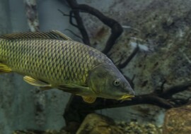 Nahrung: Als Friedfisch ernährt sich der Karpfen als Jungtier von Zooplankton, später hauptsächlich von am Boden lebenden Kleinlebewesen wie Insektenlarven, Schnecken und Würmern. Großkarpfen können teilweise auch temporär räuberisch leben und kleinere Weißfische verschlingen.