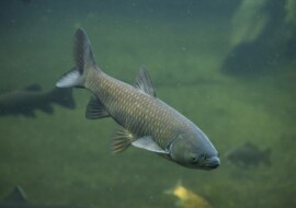 Größe: Graskarpfen haben einen langgestreckten, dem Döbel ähnlichen Körper und werden bis zu 120 Zentimeter lang. Die Durchschnittsgrößen liegen jedoch bei 50 bis 70 cm. Unter für ihn guten Lebensbedingungen (warmes Wasser) kann der Amur an die 30 kg schwer werden.